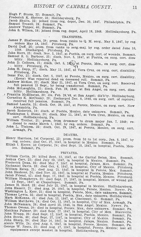 - Matthias Palmer, 20; died Sept. 27, 1847, in hospital, City of Mex. Blairsville.