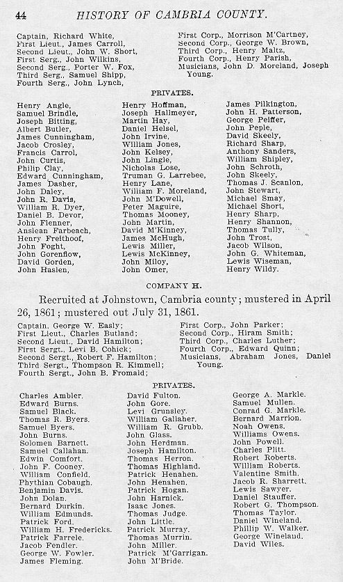 Recruited at Johnstown, Cambria county; mustered in April 26, 1861; mustered out July 31, 1861.