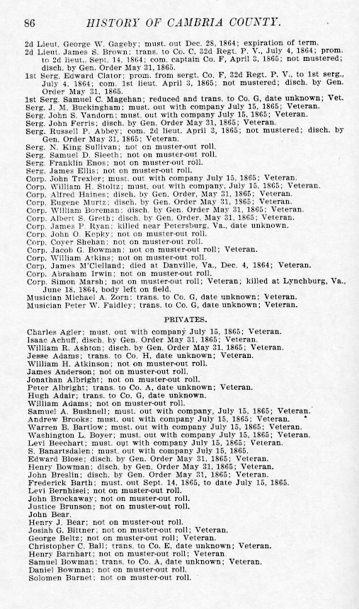 - Washington L. Boyer: must. out with company July 15, 1865; Veteran.