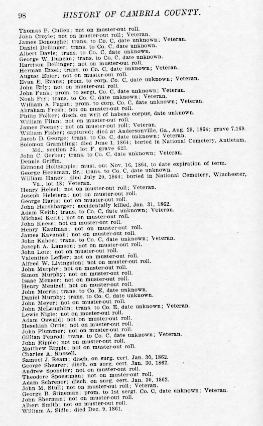 - Herman Etzel; trans. to Co. C, date unknown; Veteran.