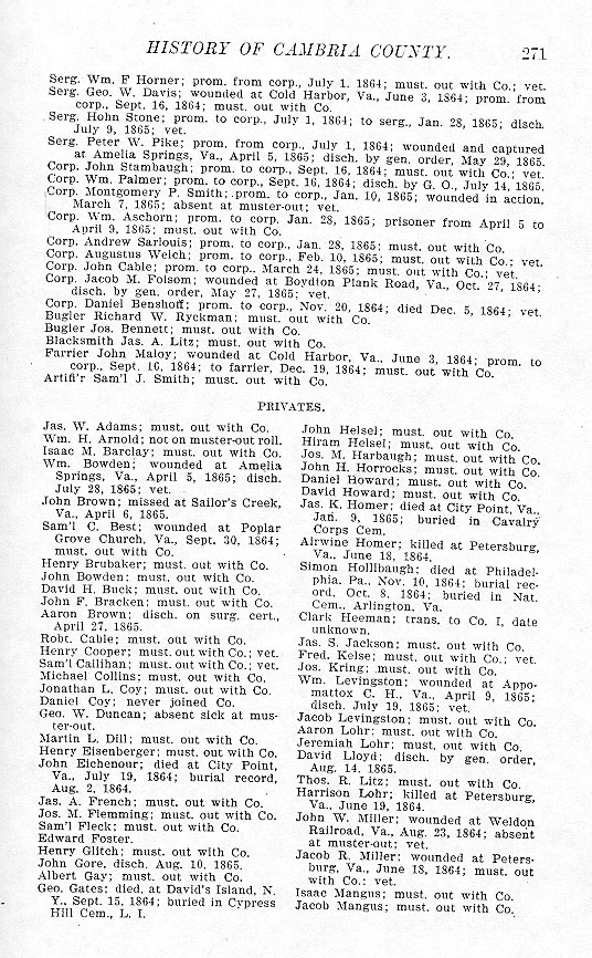 - Jas. K. Homer ; died at City Point, Va., Jan. 9, 1865; buried in Cavalry Corps Cem.