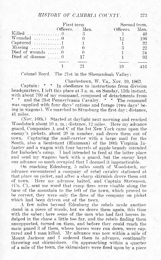 Colonel Boyd. The 21st in the Shenandoah Valley : Charlestown, W. Va., Nov. 19, 1863.