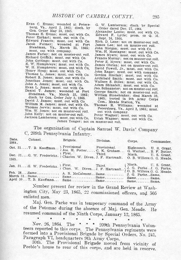 The organization of Captain Samuel W. Davis' Company C, 209th Pennsylvania Infantry.