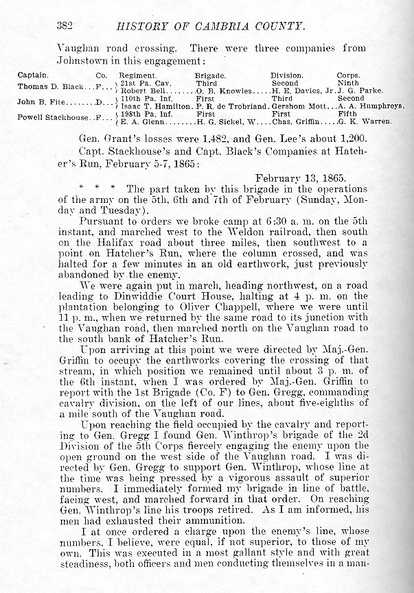 Vaughan road crossing. There were three companies from Johnstown in this engagement: